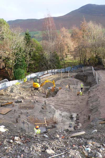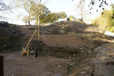 October 2009: Ready for piling after removing 380 tonnes of earth | November 2009: Rock-socketing piles |