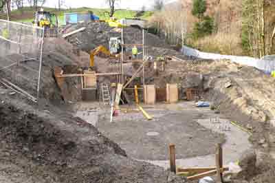 early December 2009: Constructing ground beams for lower ground floor | early December 2009: Basement foundations largely complete |