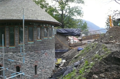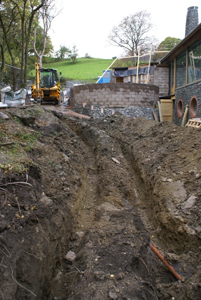 21 October 2010: North wall, with cladding almost complete | 21 October 2010: Terrace and drains |