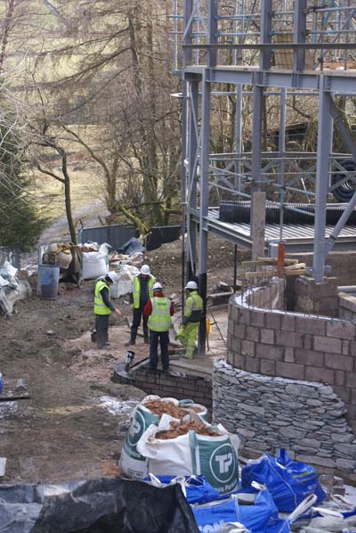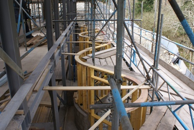 27 April 2010: Building the East chimney | 27 April 2010: West chimney from the East chimney |