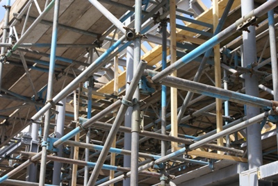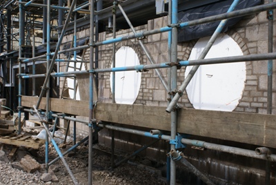 18 March 2010: East end of the North elevation | 19 March 2010: The West Apse, held up by props and surrounded by scaffold |