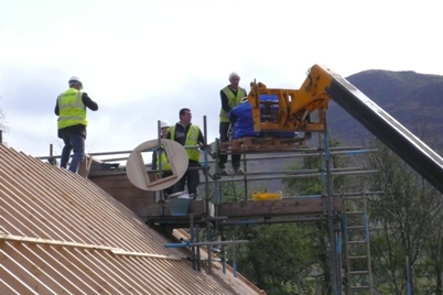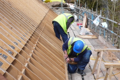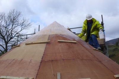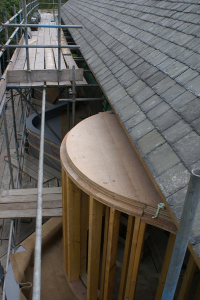 27 April 2010: Finishing the fascia to the roof - North face | 27 April 2010: Ply on the East apse roof |