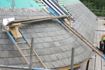 10 June 2010: East apse - stonework and slate | 11 June 2010: Initial slating of roof |
