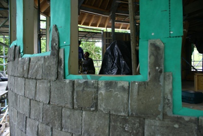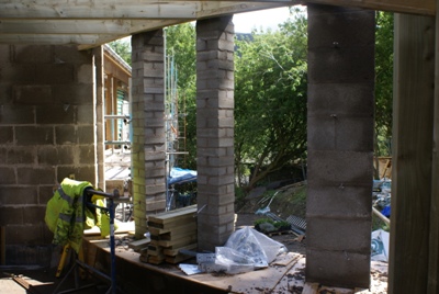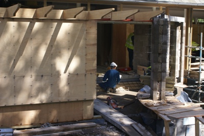 16 April 2010: Window formers in South wall of lower ground floor | 16 April 2010: Trial sunshades for ground floor - spot them if you can! |