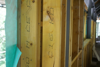 10 June 2010: North wall slating | 10 June 2010: North wall studwork detail |