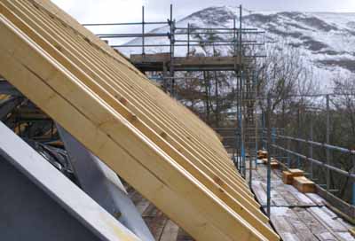 10 June 2010: North roof slate battens | 10 June 2010: Ready for slating |
